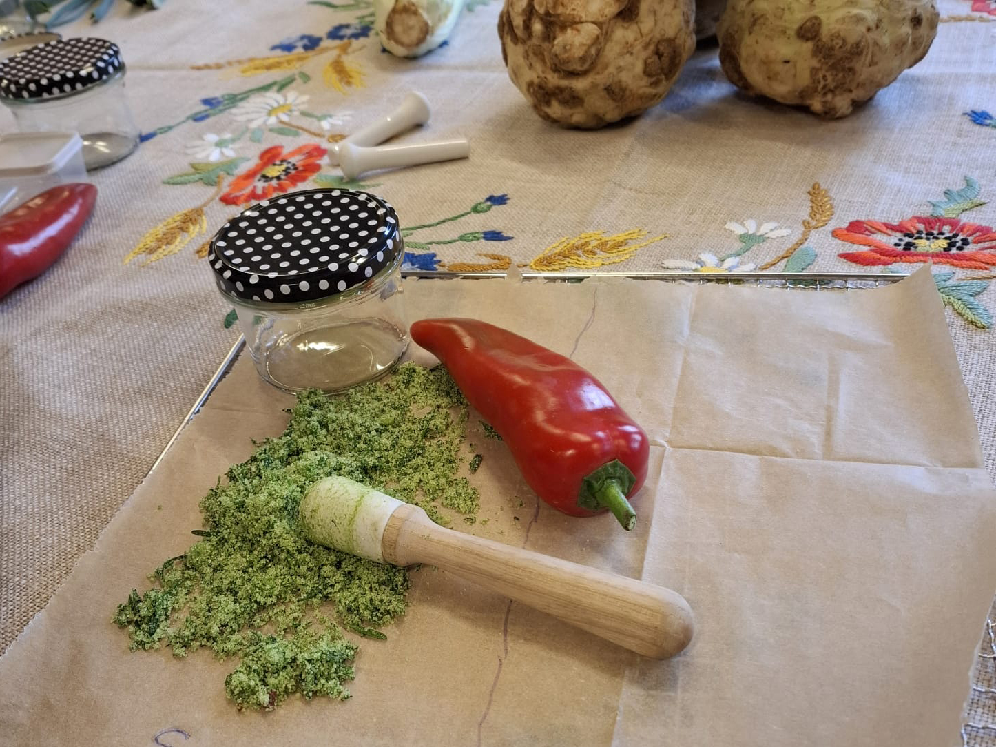 In diesem Workshop dreht sich alles um das Selbstmachen von Grundzutaten, die in keiner Küche fehlen dürfen: Gemüsebrühe, Butter und Kräutersalz. Gemeinsam stellen wir aus frischen, saisonalen Zutaten eine köstliche Gemüsebrühe her, die sich wunderbar für Suppen, Eintöpfe und viele weitere Gerichte eignet. Zusätzlich kreieren wir individuelles Kräutersalz mit aromatischen Kräutern und Gewürzen, das jedem Gericht das gewisse Etwas verleiht, und machen Butter selbst. Am Ende des Workshop nimmt jeder seine selbstgemachte Gemüsebrühe und das Kräutersalz in hübschen Gläsern mit nach Hause.
